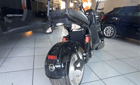 - Motor 3000W, Autonomia Máxima Motorizada: 30 ~ 45 km, Velocidade máxima: 45km/h ~ 55km/h, Bateria 60V 20Ah, Compartimento para segunda bateria, Carregador 110-220V, Botão START/STOP, Carga Máxima de 150kg, Sistema de freio a disco, Amortecedor dianteiro e traseiro